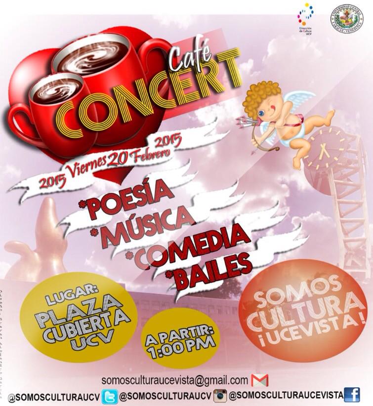 Café Concert, viernes 25 de febrero Vinculo UCV 3:31 p.m. Bailes, Café Concert, Centro de Estudiantes, Comedia, Cultura, Movimiento Vínculo, Música, Plaza Cubierta, Poesía, UCV, UCVistas No comments No te pierdas de la poesía, música y danza en este Café Concert del 20 de Febrero a partir de la 1pm Plaza Cubierta UCV Share This: Facebook Twitter Google+ Stumble Digg Enviar esto por correo electrónicoBlogThis!Compartir en XCompartir en Facebook