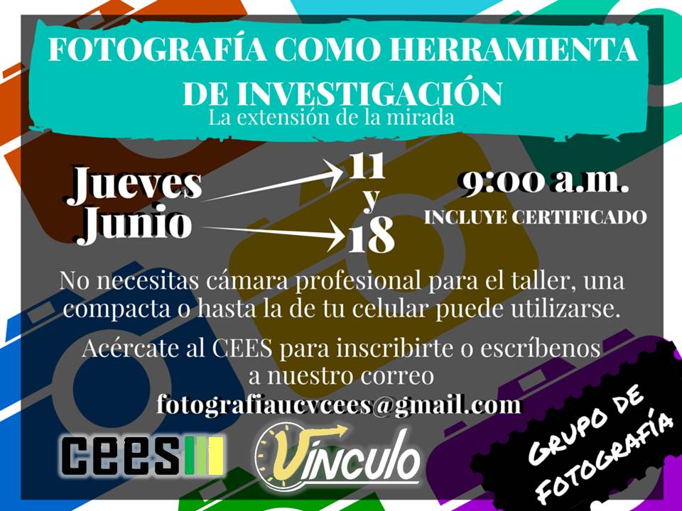 Te invitamos a inscribirte en el CEES o escribiendo al correo del grupo de fotografía de la Escuela de Sociología, fotografiaucvcees@gmail.com