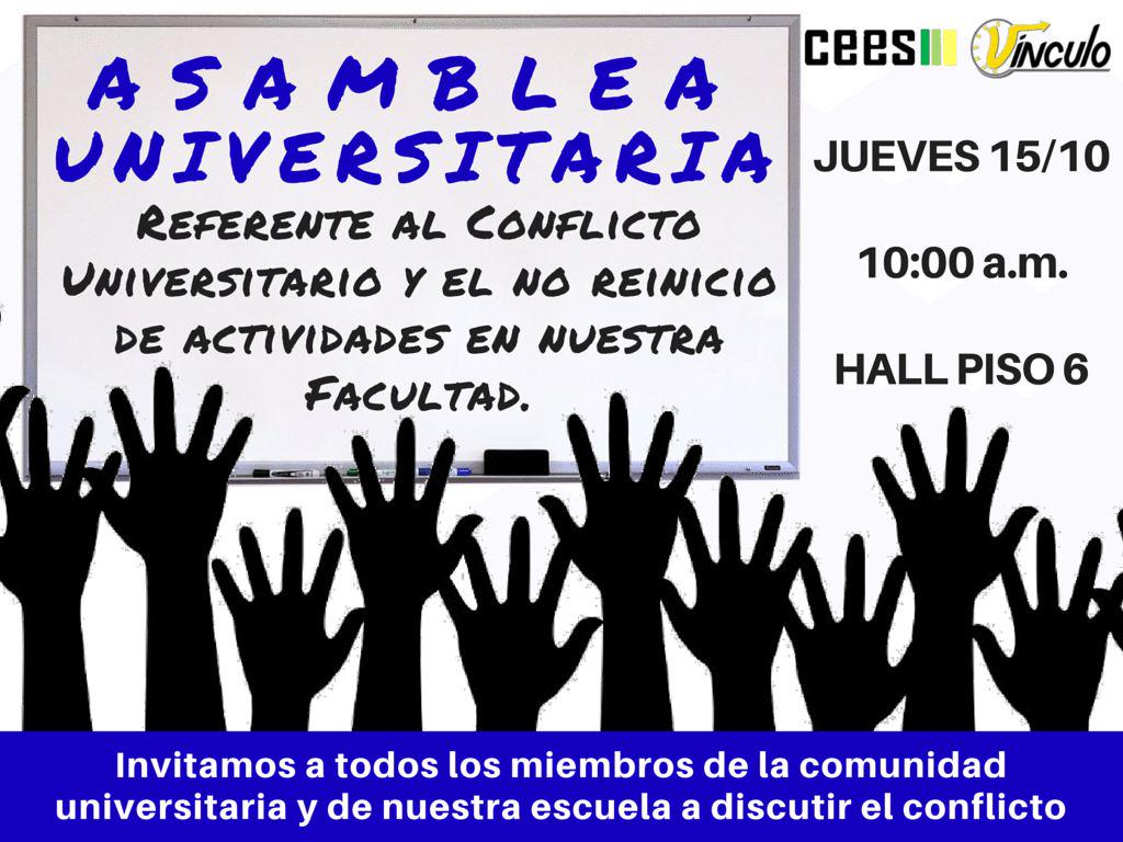 Asamblea universitaria referente al conflicto y al no reinicio de las actividades Vinculo UCV 7:18 a.m. Asamblea, Centro de Estudiantes, Crisis UCV, Escuela de Sociología, FaCES, Hall piso 6, Iniciando Procesos, La Nueva Escuela, Movimiento Vínculo, Sociología, UCV No comments Este jueves 15 de octubre acércate al hall de la escuela de Sociología y aclaremos la situación del no reinicio de las actividades académicas en nuestra Facultad. Share This: Facebook Twitter Google+ Stumble Digg Enviar esto por correo electrónicoBlogThis!Compartir en XCompartir en Facebook